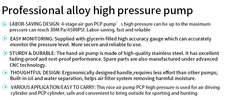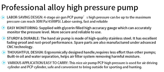🔶Sturdy & Durable: The hand pcp air pump is made of high-quality stainless steel. It has excellent fading-proof and rust-proof performance. Spare parts are also manufactured under advanced CNC technology.
