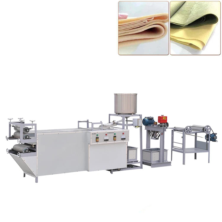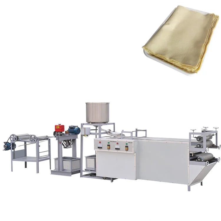 The automatic tofu skin machine is made of stainless steel, which is sturdy and durable. The machine is operated with one-button operation. From feeding to folding, the production process is automated and only one person can complete it. The machine adopts double-layer mode, which occupies a small area and is convenient for production. The pressing adopts pneumatic pressing. It only needs to set the time, no manual care is needed, and the unwrapping cloth is even simpler. The automatic tofu peeling machine is equipped with a peeling machine, which can produce the finished product at one time without damage. It saves a lot of time than labor. In addition, we teach technology and welcome customers from all over the world to inspect and purchase machines.