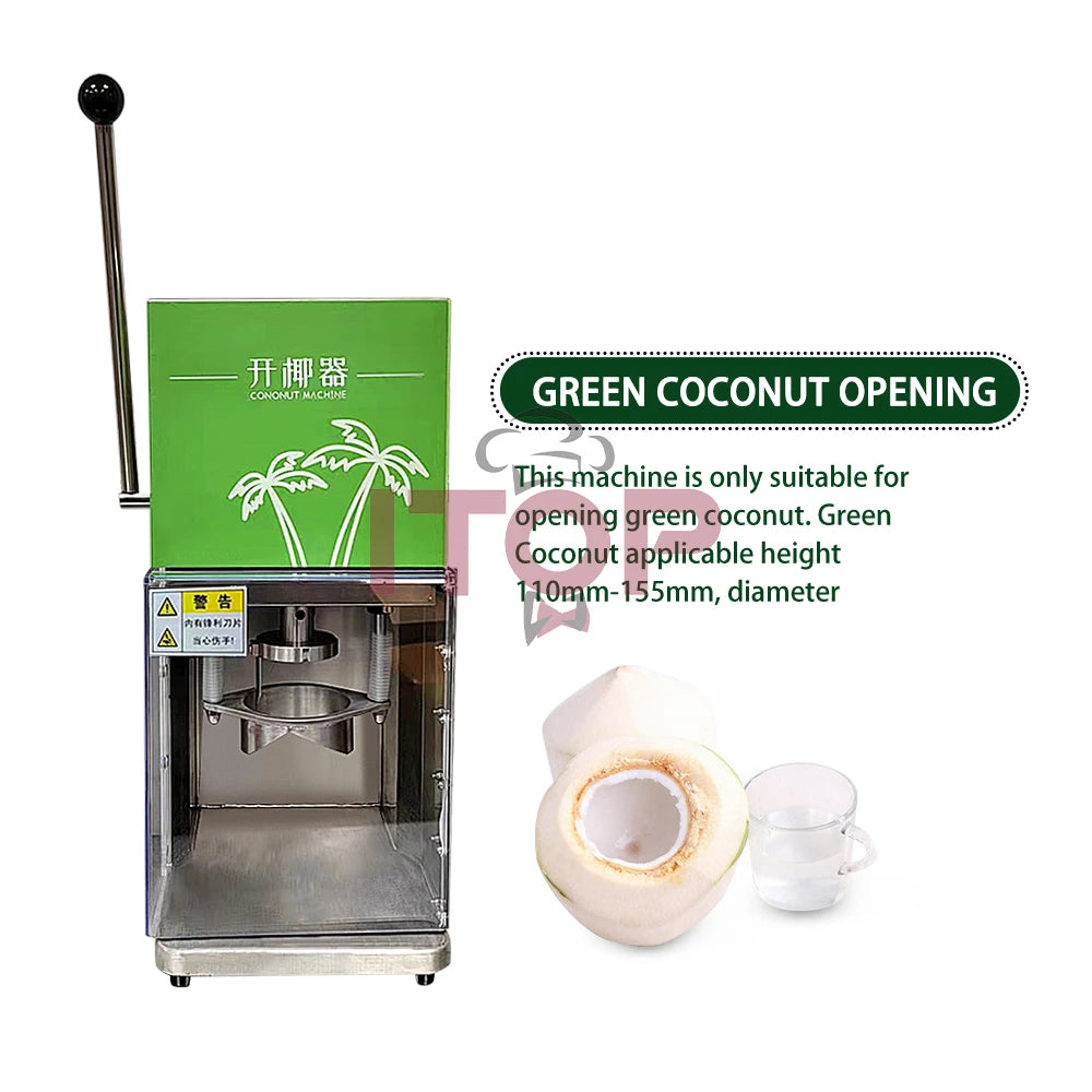 (1)Thickened stainless steel body, thickened transparent acrylic door; (2)All copper motor, stable quality, fast cutting; (3)Conventional coconut green opening diameter is 6cm, can be customized 7cm,8cm; (4)With 3 pieces of 6CM blades, they are consumable accessories and not in the warranty scope. It is recommended to purchase additional spare parts. (5)This machine is only suitable for opening green coconut. Green Coconut applicable height 110mm-155mm, diameter 110mm-145mm.