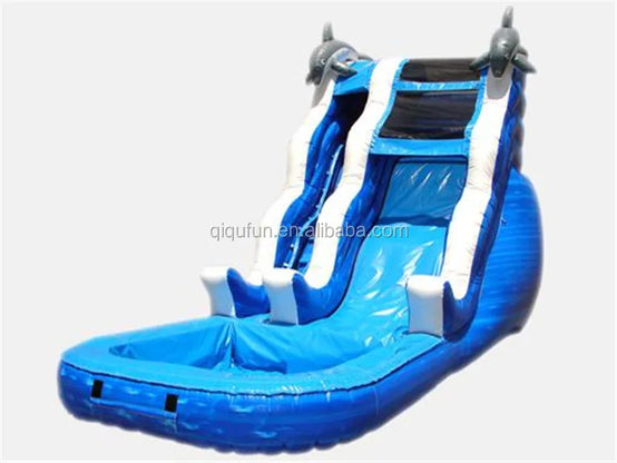 Commercial Bule Inflatable Water Slide With Swimming Pool/ Inflatable Pool Slide