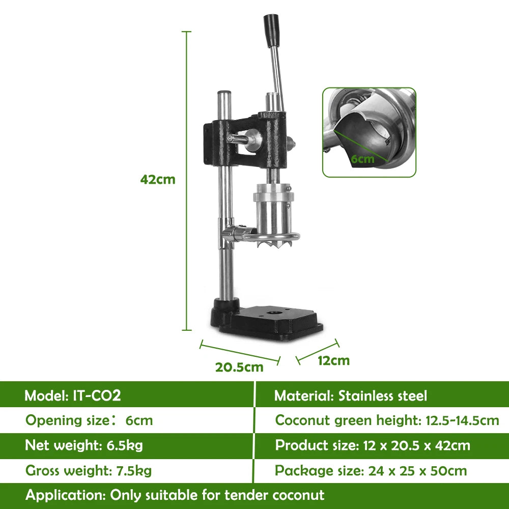 Commercial Coconut Opener Lid Machine Stainless Steel Coco Water Punch Tap For Young Green Coconuts Easy Control Tool Black