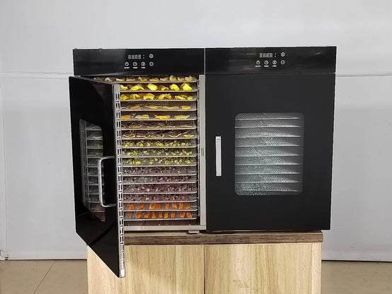 Stainless steel, timer:24 hours, temperature range:30℃-90℃, 3000W, 110V 60HZ or 220V 50HZ , US or EU or UK or customized plug, 32-tier 304 stainless steel rack, tempered glass door, smart temp. controller, hot-air convection, Rapid dehumidification, machine size:800*465*620mm (31.50"x18.31"x24.42"), Packing szie:855*520*675mm, grid size:385*285mm, inner chamber size:770*490*440mm, total 170L,over- temperature 100℃ protection:included,color: red or black, color to be delivered randomly.