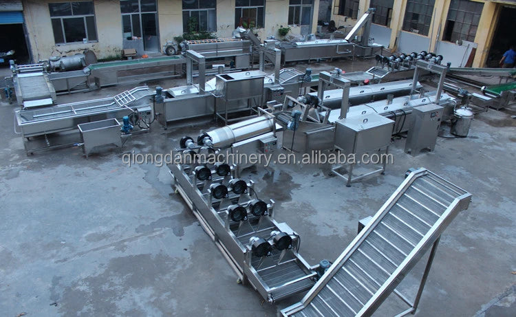 Fully automatic banana chips/flour production line is to make banana chips/powder or banana slices including banana peeling machine, banana chips cutting machine, frying machine,air dryer machine, seasoning machine, crushing machine and packaging machine. The capacity of the banana chips/powder production line is 200-500kg/h. Processing capacity can be customized. All machines are made of food grade 304 stainless steel.Compared with the semi-automatic plantain chips production line, full automatic line that greatly decrease the labor cost and improve working efficiency.