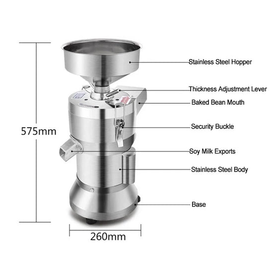 This Soya Milk Maker is a kind of new type processing machinery of soybean products, it can finish grinding and splitting under the revolution of the lower grinding wheel, filter screen and support of filter screen driven by a high-speed motor. It is easy to operate and high working efficiency.  Soybeans grinder machine. Suitable for make soy milk, tofu etc. Application to the unit canteens, restaurants and small food processing plants.
