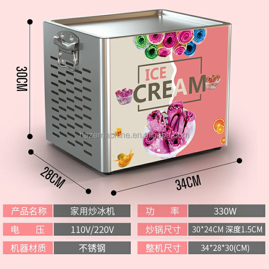 Here we present you this new Fried Ice Cream Maker. It copes with pure water, prepared formulas, fruit juice, milk shake...etc. You can create a variety types of soft and hard ice cream, smoothies, Ice, ice mud, slush, snow ice, fruit ice, ice porridge, etc. It can make ice fast within just 58 seconds while energy saving. Can be used to make ice cream, yogurt, ice shaving and more styles waiting for you to explore. Not only being convenient and efficient to use, processed foods made by it taste good, rich in nutrition and refreshing.