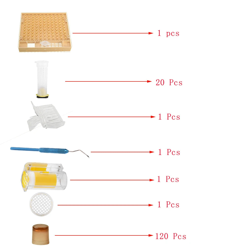 Pcs x Brown Cell Cup 20 Pcs x Queen Cage 1 Pcs x Queen bee mark bottle 1 Pcs x Beekeeping Clip 1 Pcs x Move worms needle 1 Pcs x