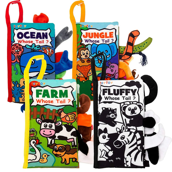 Coolplay Baby's First Non-Toxic Soft Fabric Book Set Crinkle Baby Quit Books Friction Baby Cloth Books Set