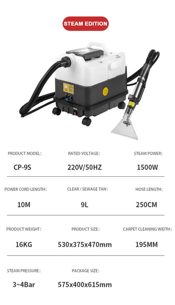 CP-9S Steam Rug Carpet Cleaning Machine Sofa Vacuum Extractor Electric Car Detailing Machine