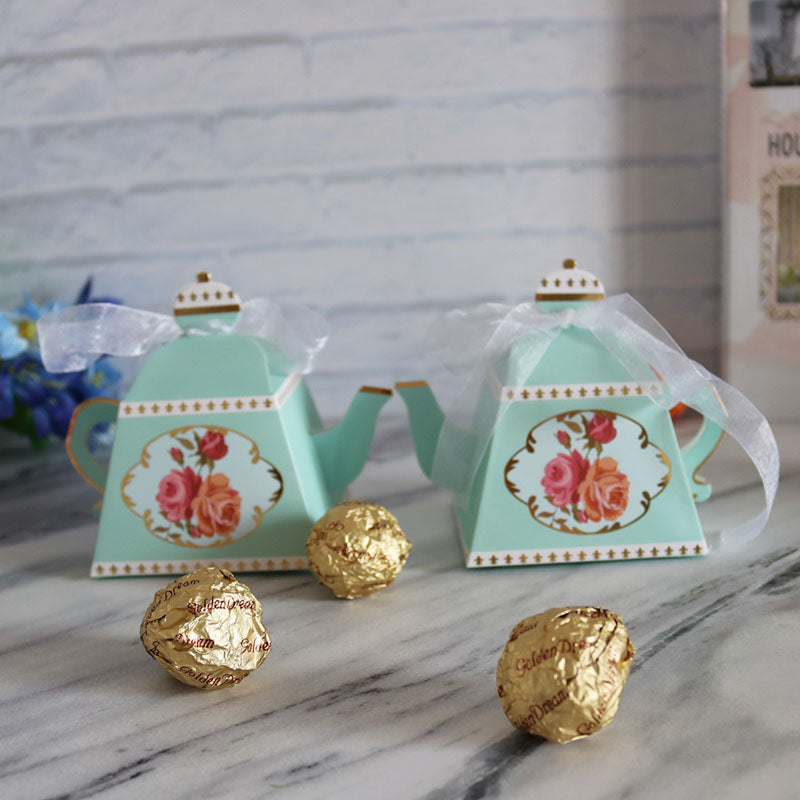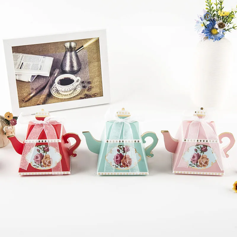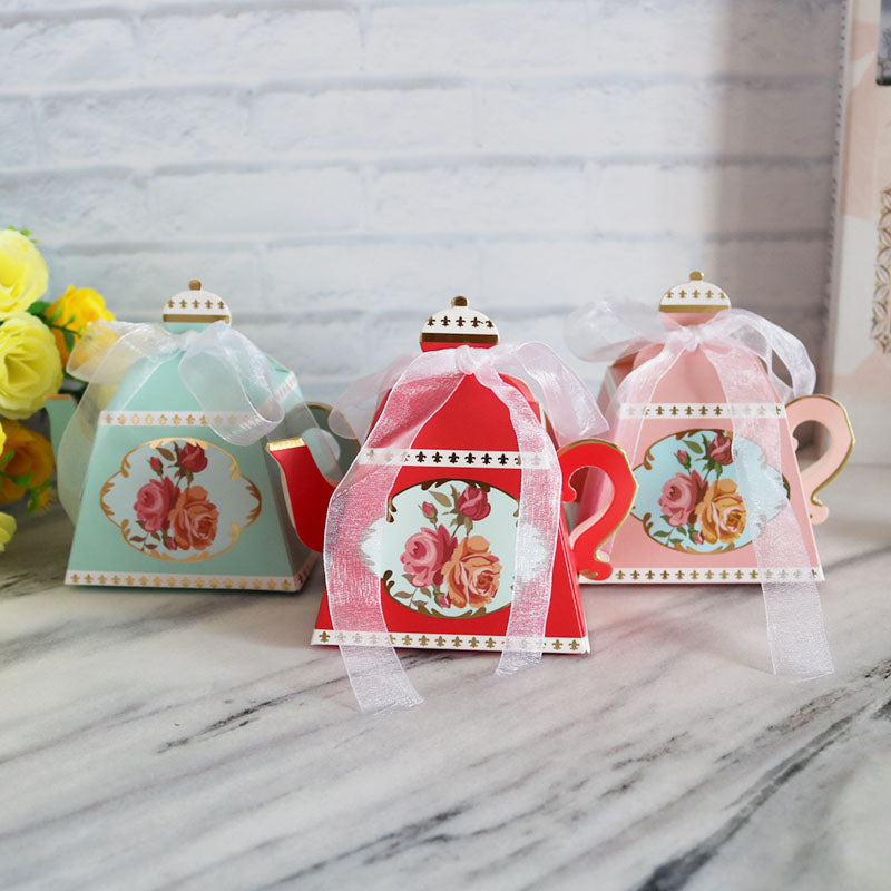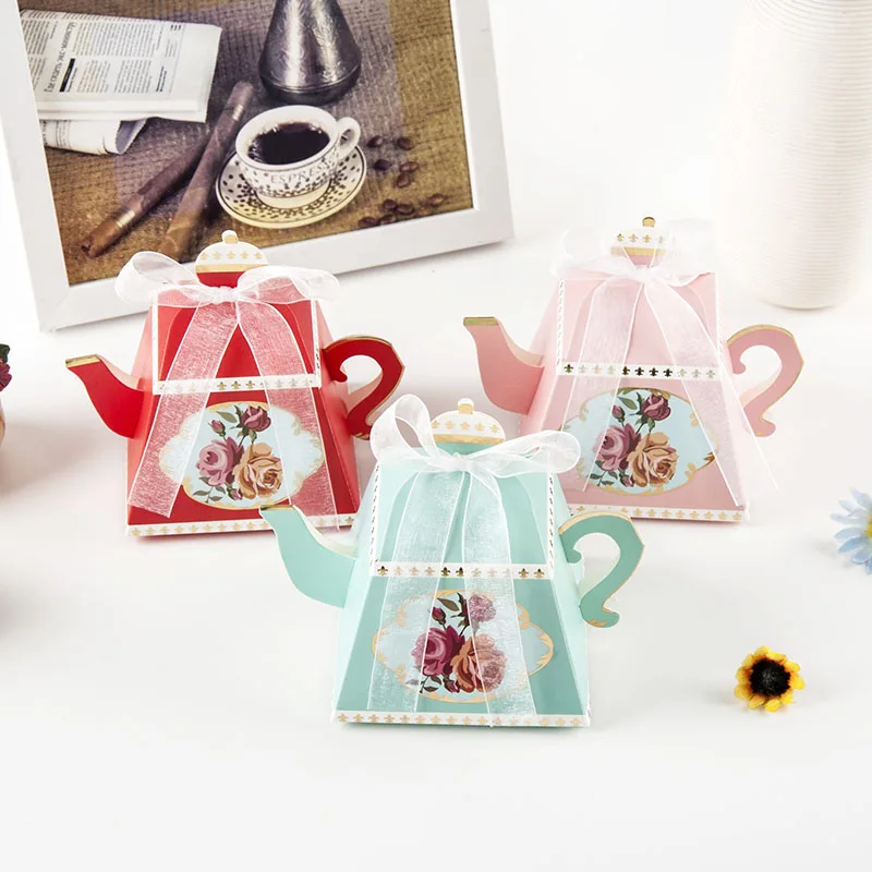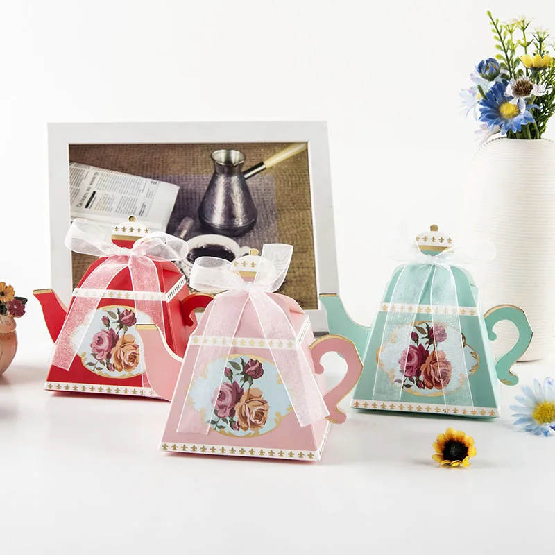 Creative Teapot Wedding Dragees Box Flower pattern Paper Gift Boxes Event & Party Supplies
