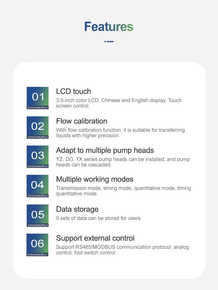 Chuang Rui make sure that our factory can supply peristaltic pump of best price, high quality, so you will be full of confidence for your market expansion.