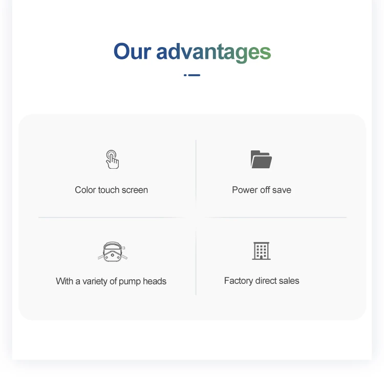 With 10 years professional experience of Peristaltic pump Tubing pump Liquid handling pump . Now we independent research and development of more than 30 series, over 200 kinds of products. We not only produce the standard peristaltic pump, Peristaltic pump filling system , but also focus on the ideal OEM design and customization. According to the actual needs of customers to produce the ideal OEM peristaltic pump .Widely used in various industries of pharmaceutical industry, fine chemical industry, environmental protection, biochemical industry, laboratory & research application etc.