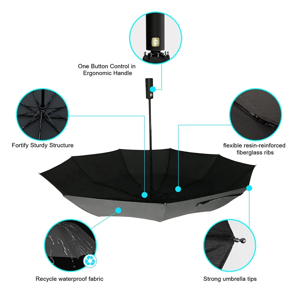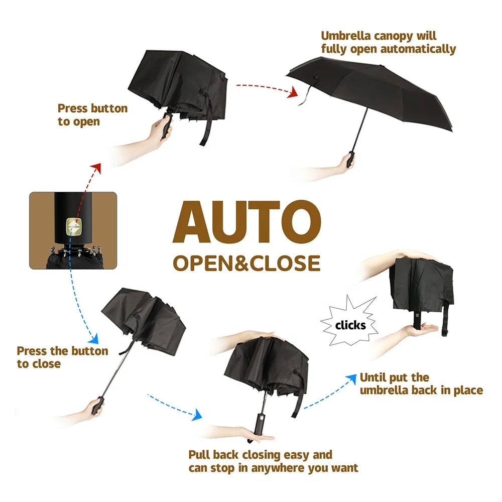 Custom Durable Windproof Paraluie Umbrella Folding Portable Auto Customized Three-fold Umbrella