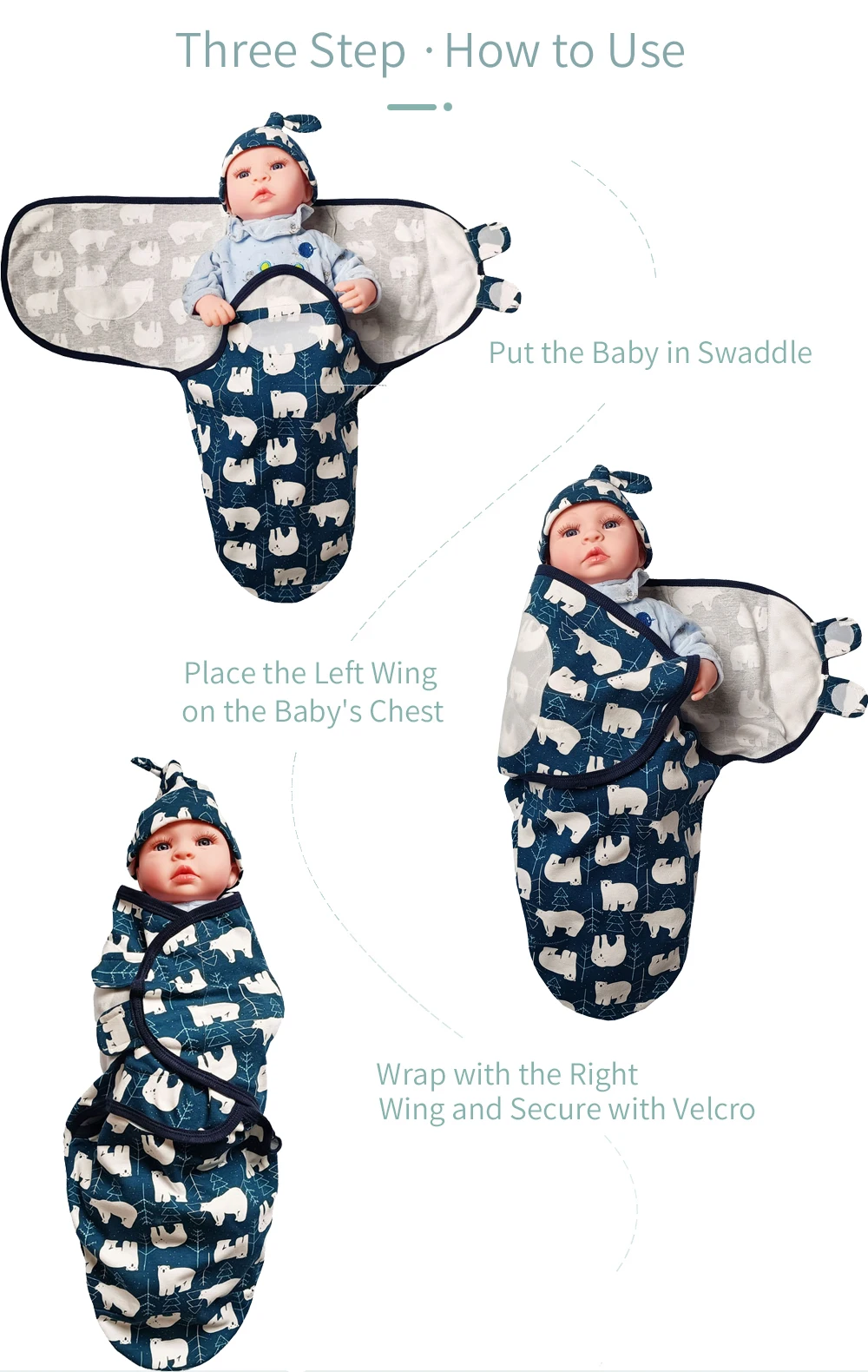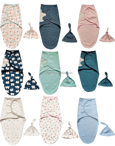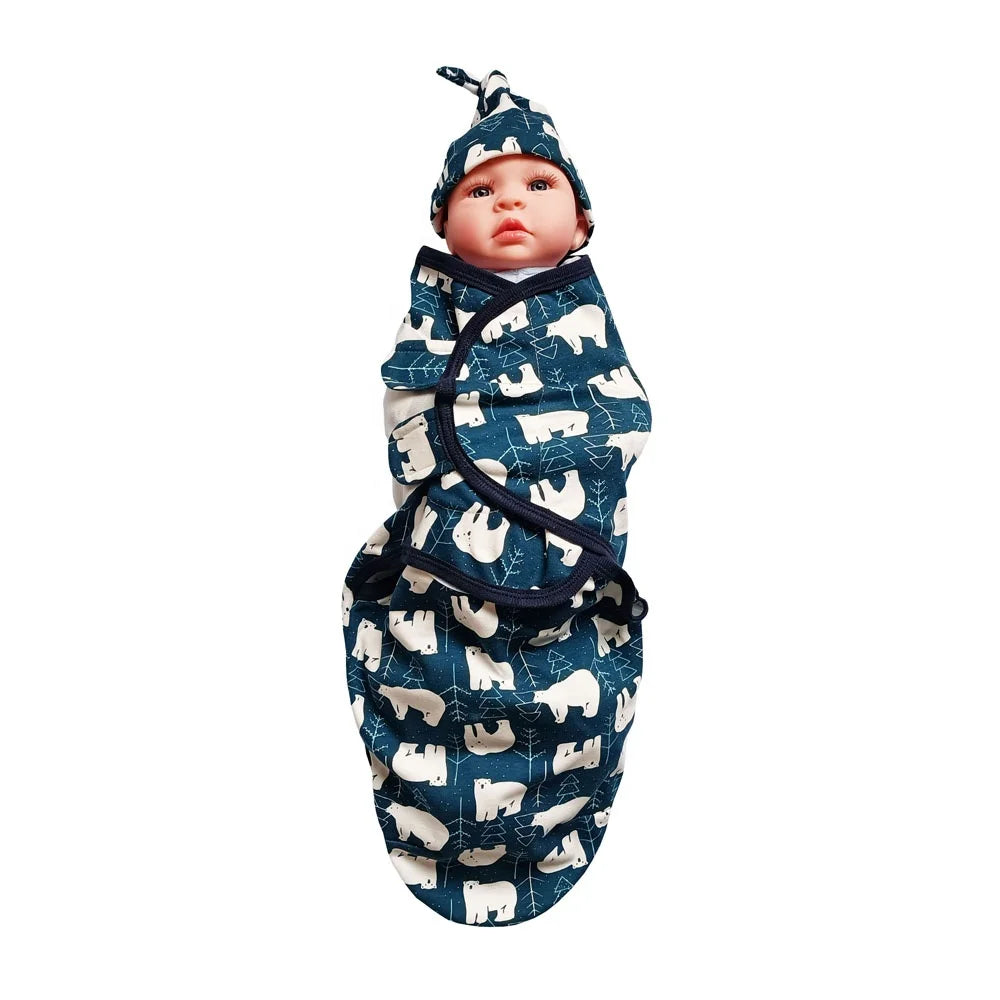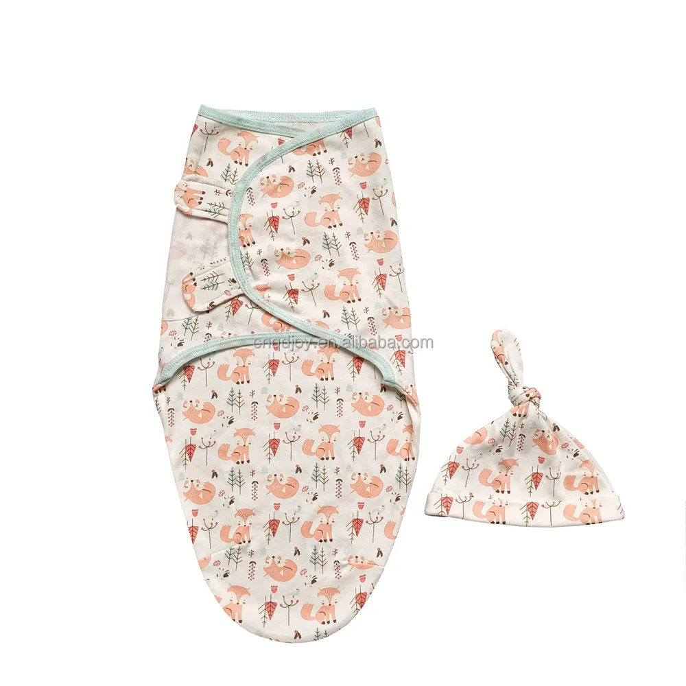 custom print knitted cotton newborn infant blanket wrap baby swaddle with hat headband set
