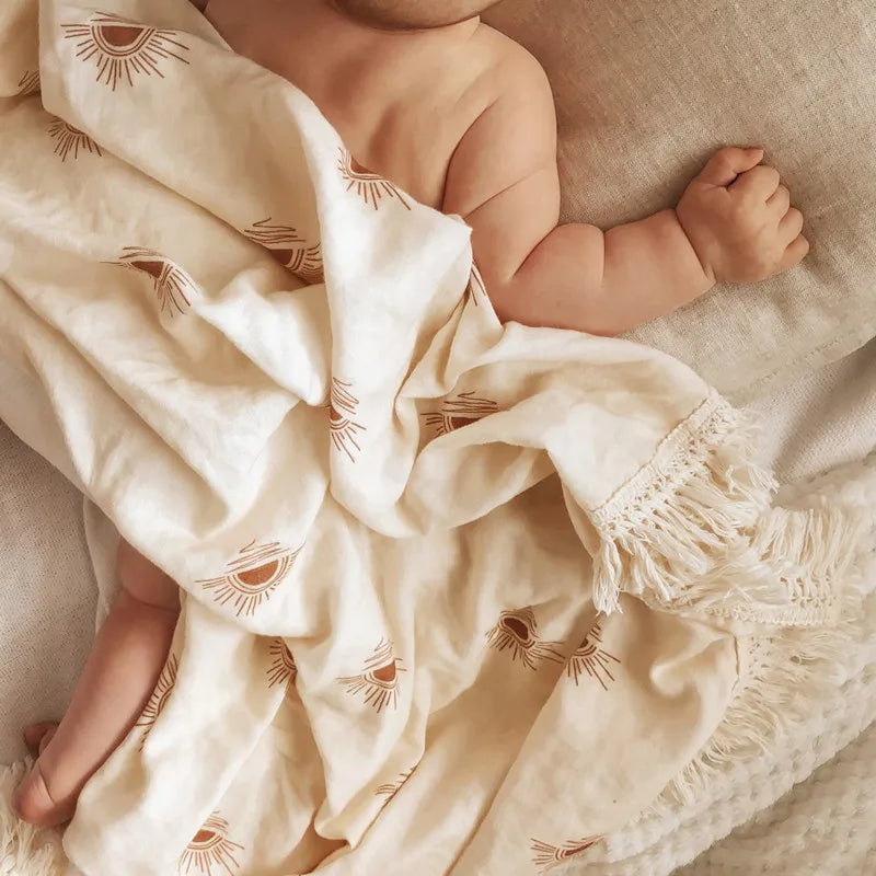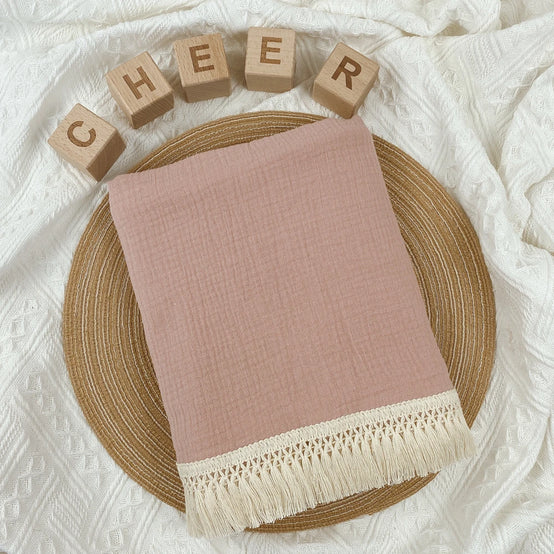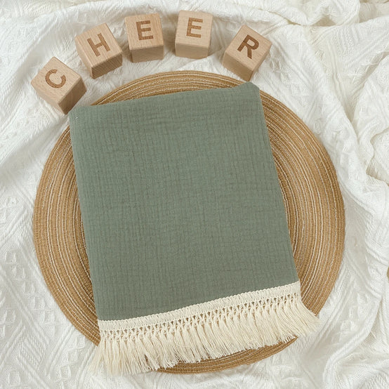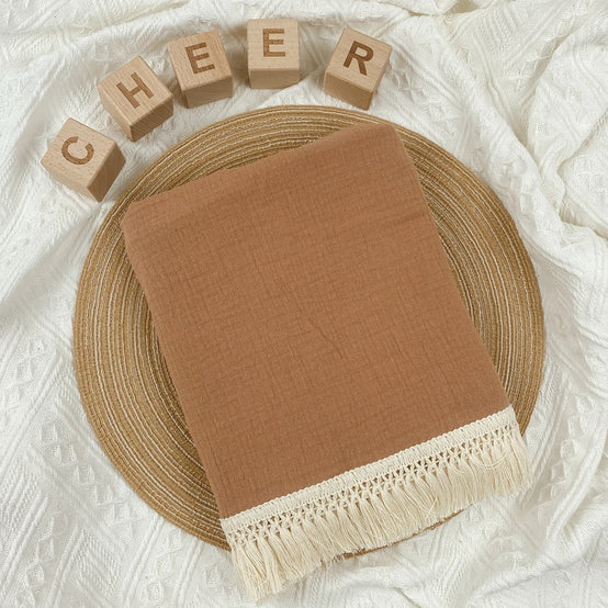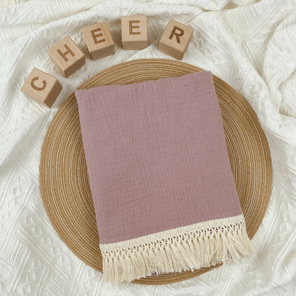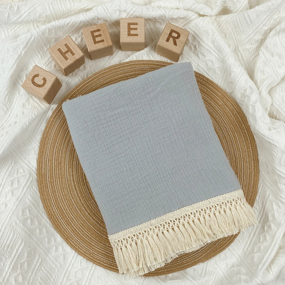 Custom Print Muslin Cotton Swaddle Fringe Tassel Newborn Swaddle Wrap Sleeping Quilt Baby Blanket