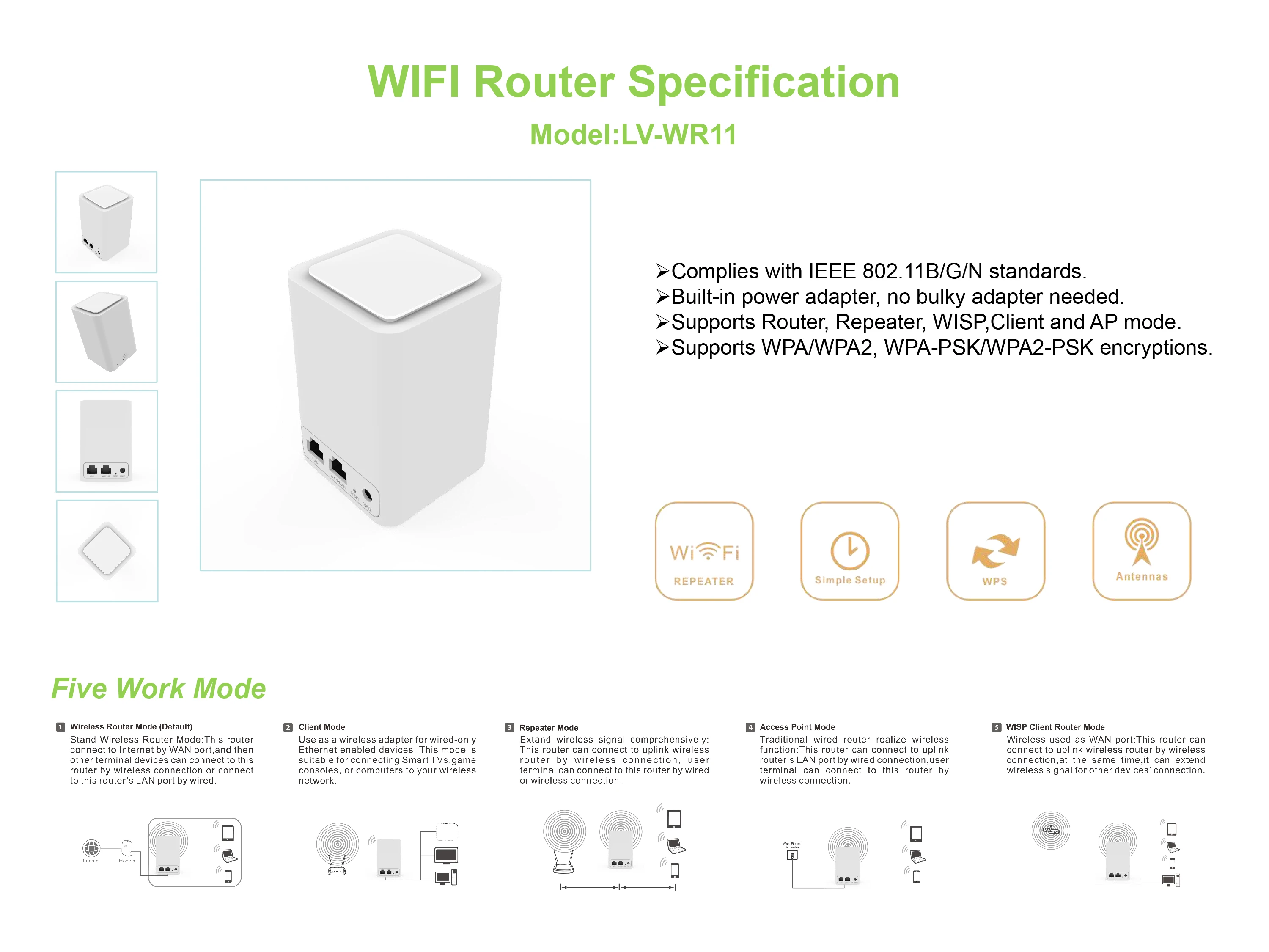Customized PIX-LINK wifi signal booster 300Mbps Wireless-N Repeater/Router/AP LV-WR11 signal booster with internal antenna