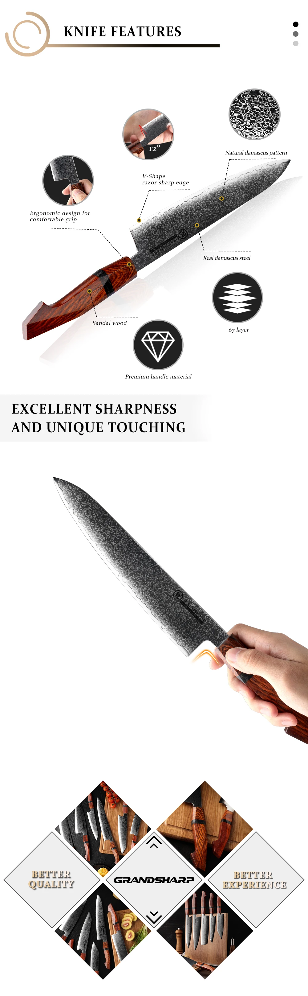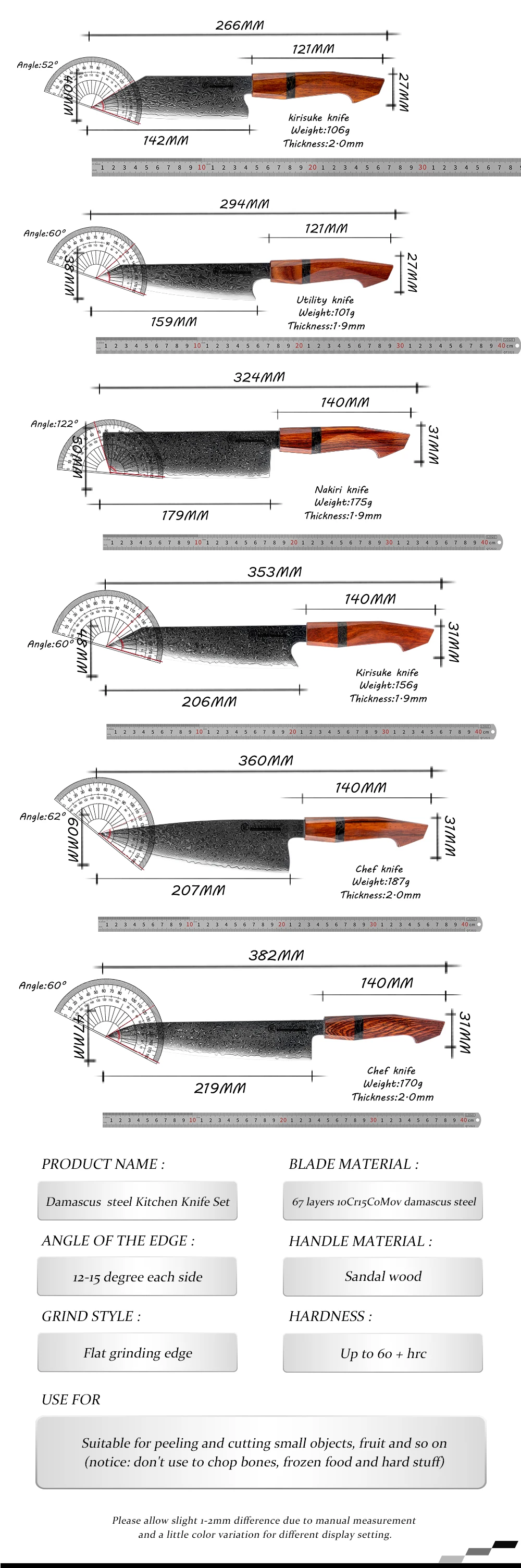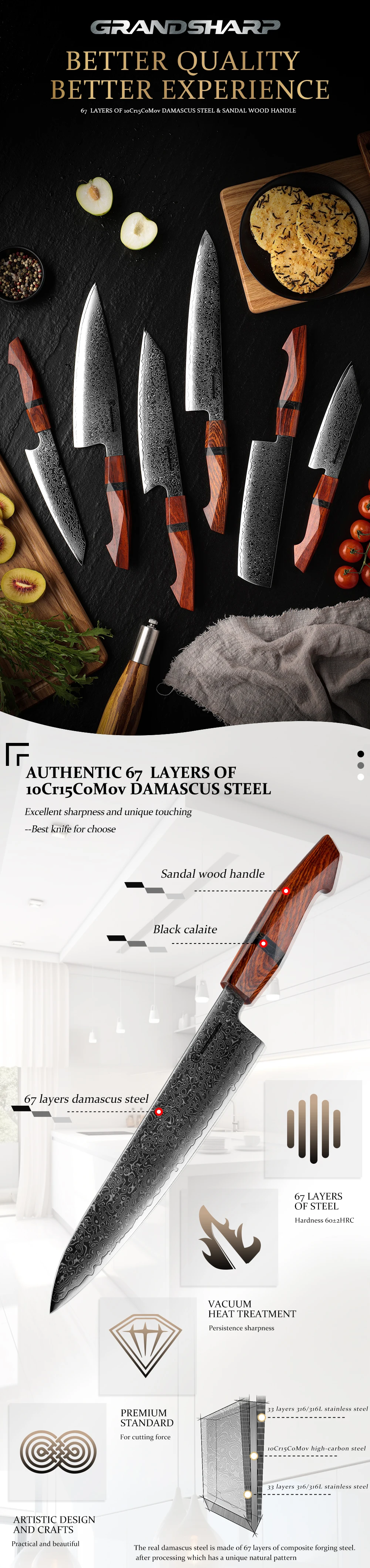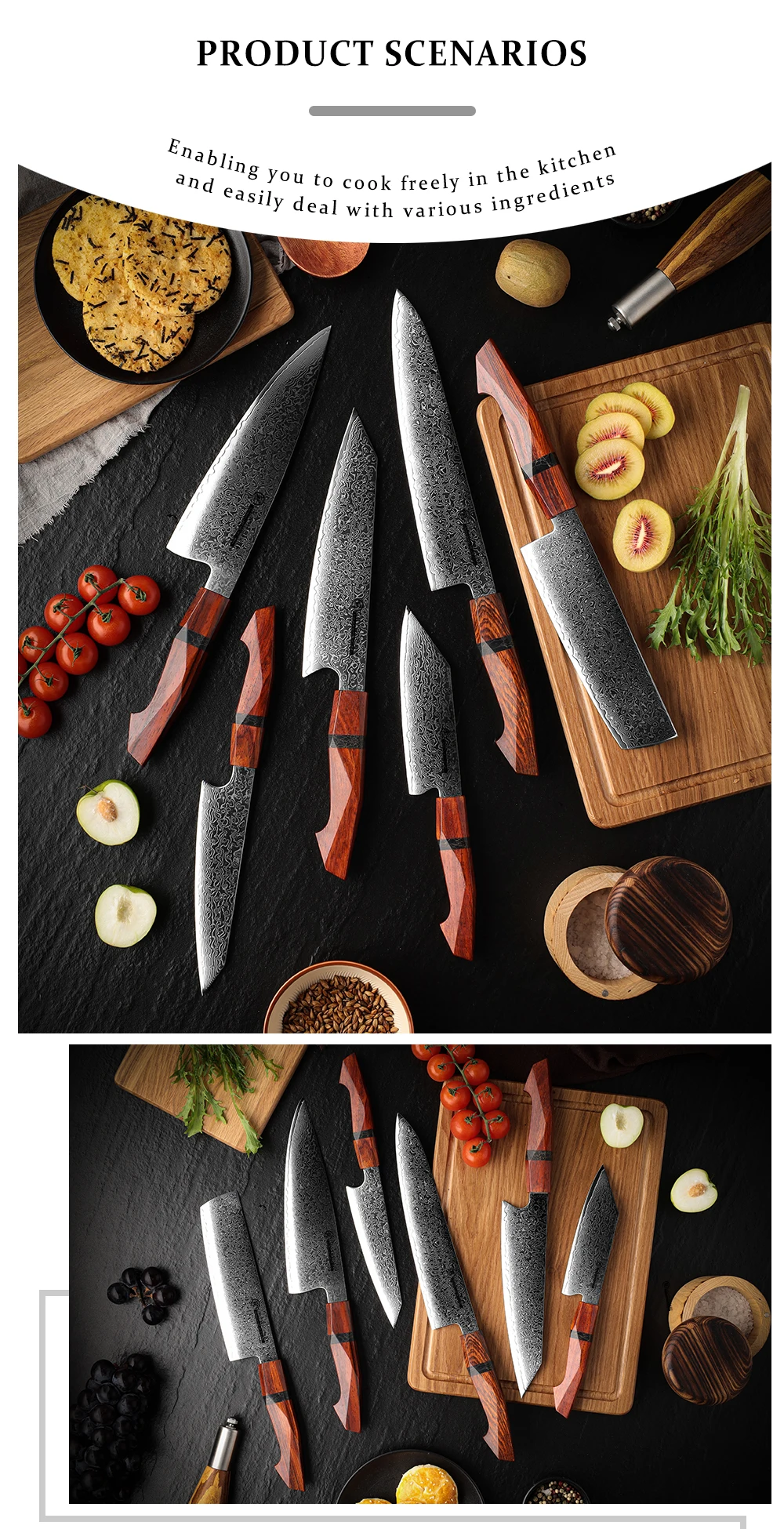 Damascus Knives Set Japanese Knife for Kitchen 67 layers 10CR High Carbon Stainless Steel Chef Knives Set -Sandal Wood Handle
