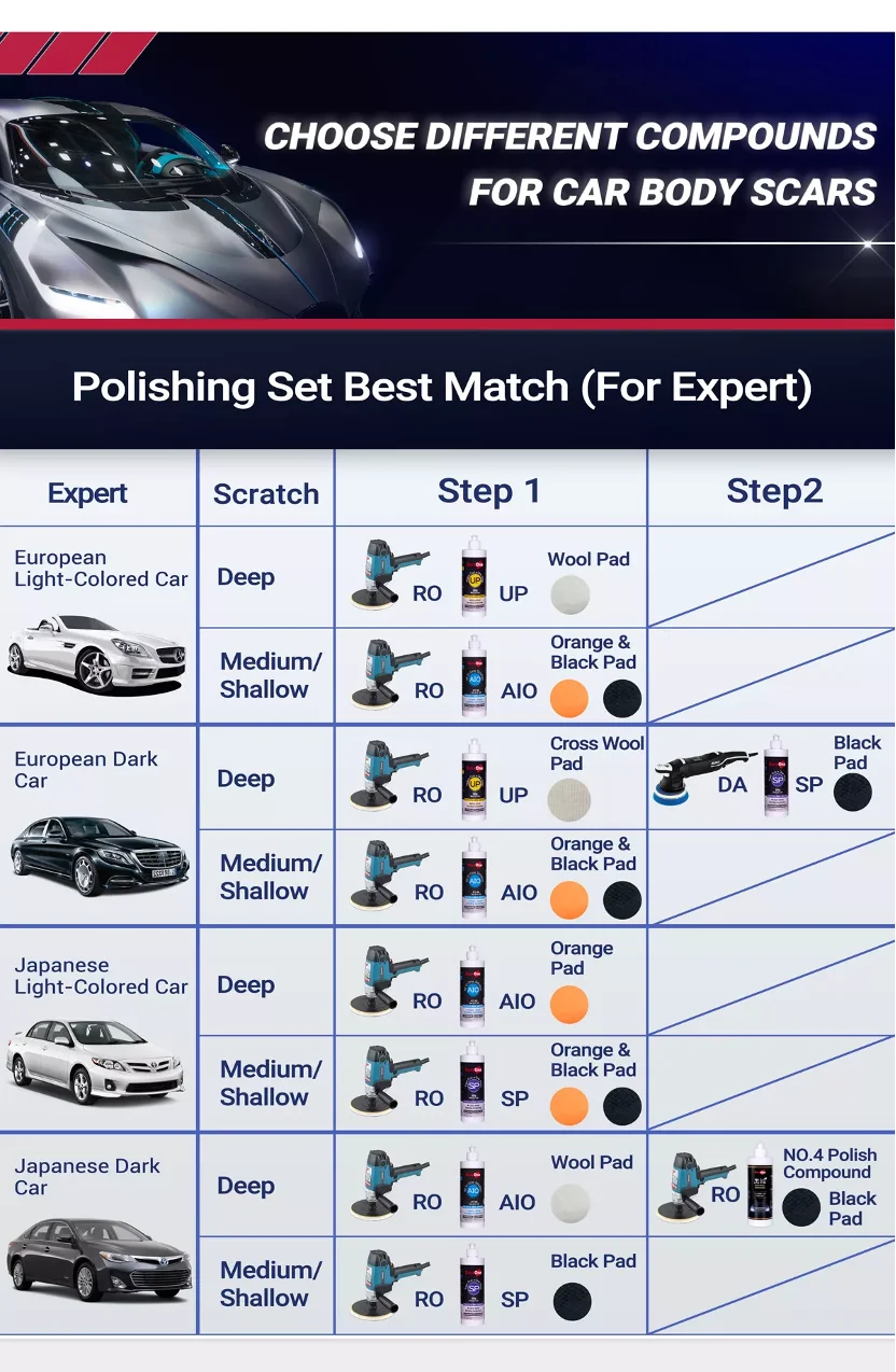 2. Fix moderate to heavy scratches equivalent to p800~2000 sanding scratch, swirls, scuff marks, spider webbing and most surface imperfection.