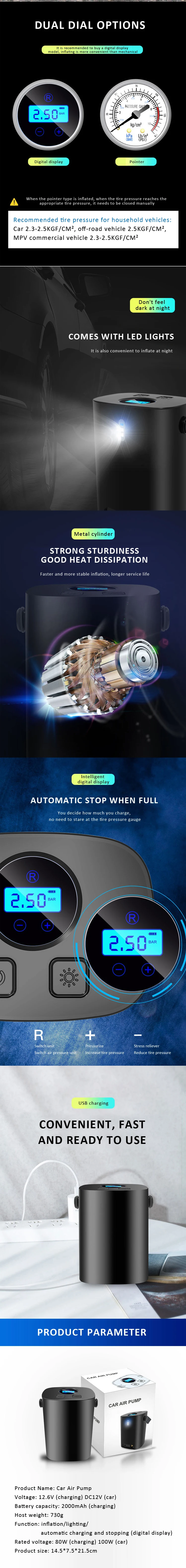 Dc 12v Pump Mini Car Tire Air Compressor Portable Rechargeable Air Compressor Tyre Pump