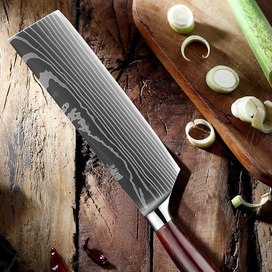 7 CR17 Stainless steel blade,surface laser Damascus pattern