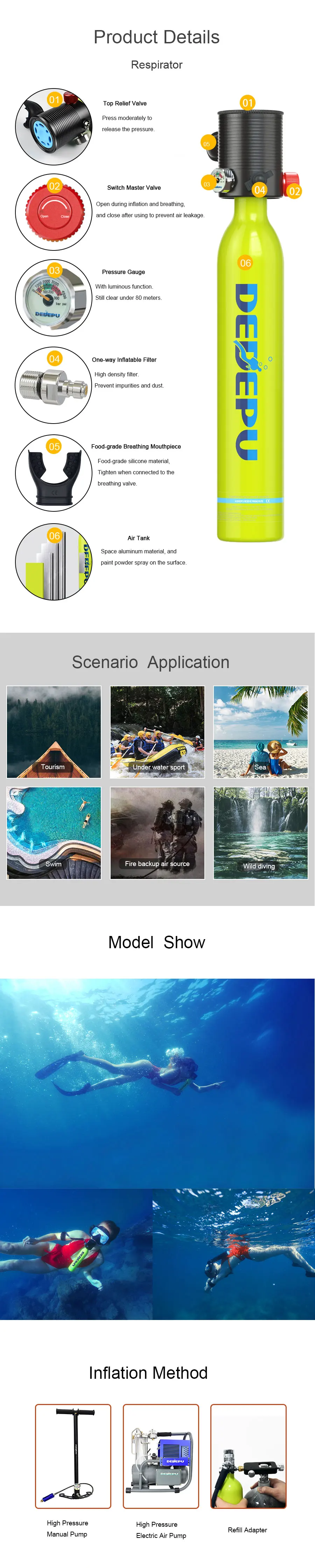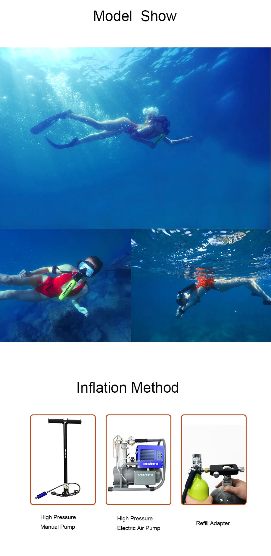 Outdoor water sports, snorkeling and recreation, emergency deep back up emergency gas sources, fire and marine emergency rescue, adventure etc.