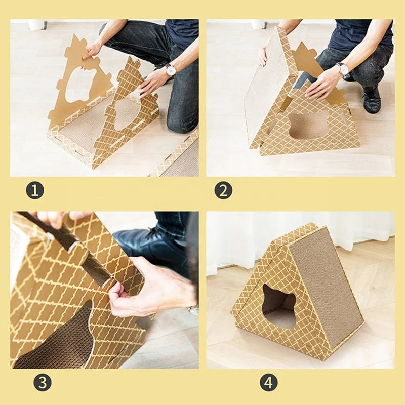 DEKU triangle Foldable solid Cardboard pet house Cat Scratcher for winter