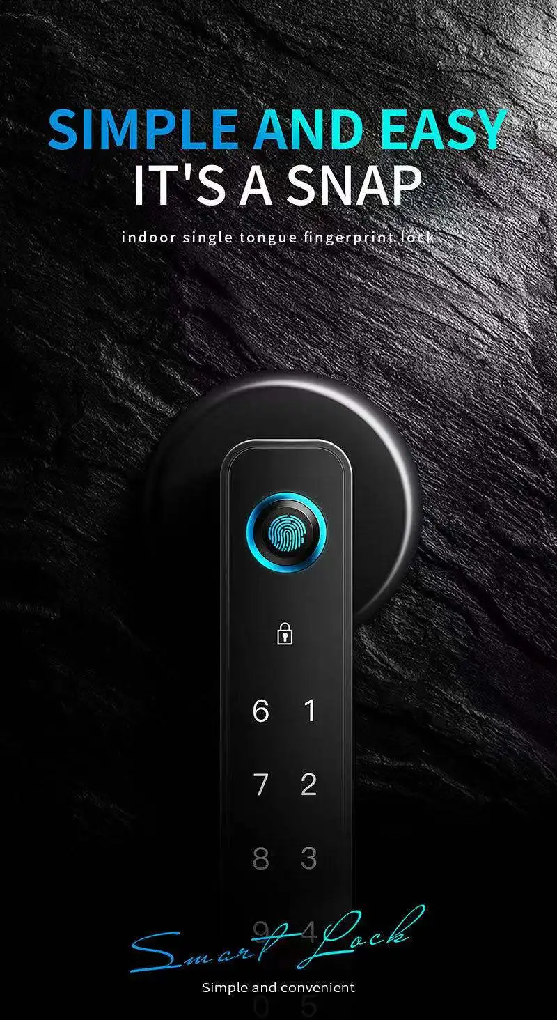 Digital keyless single tongue snap fingerprint TTLOCK APP lock for airbnb home apartment fingerprint smart door lock handle lock