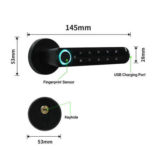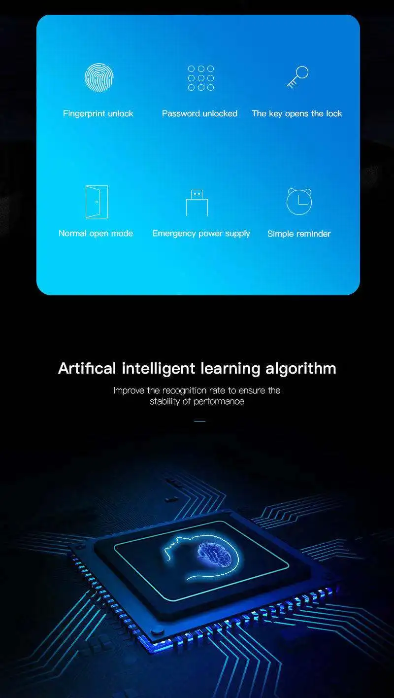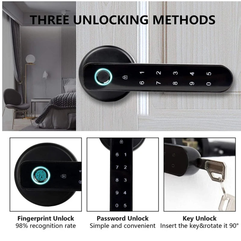 1- TTLOCK APP, which can be controlled remotely by smart phone, 2- Multiple unlocking methods: Bluetooth mobile phone APP+fingerprint+password+key unlocking 3- Support Silent mute, normally open mode, low battery reminder 4- Exquisite design, small size and weight, saving freight, more suitable for e-commerce sales