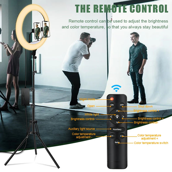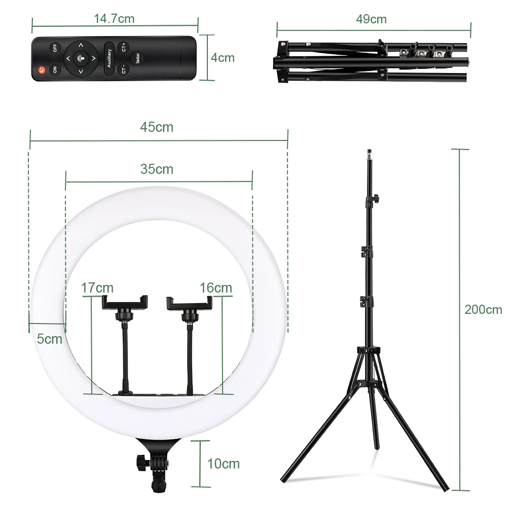 Dimmable Ringlight Photographic Lighting LED Ring Lamp 18 inch Selfie Ring Light with Tripod Remote Studio Video Fill Light