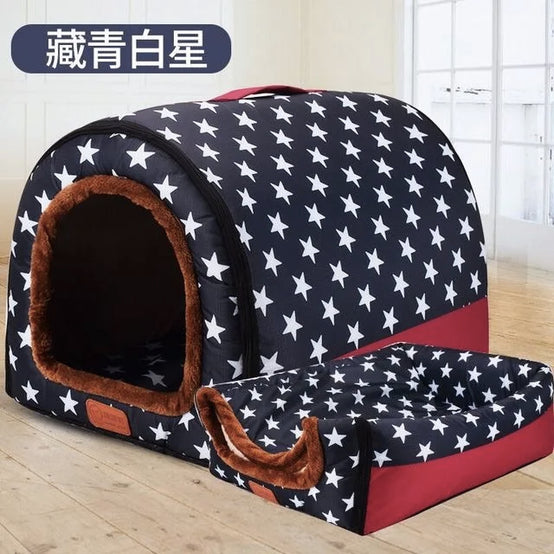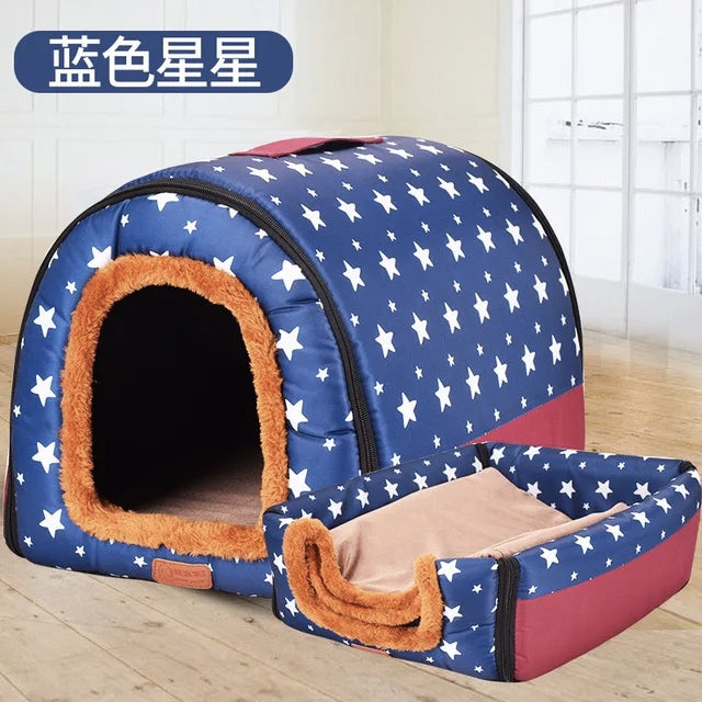 Warm Dog House Print Stars Soft Foldable Pet dogs bed For Puppy large medium Travelling Portable Kennel Mat Cat bed Pet Supplies