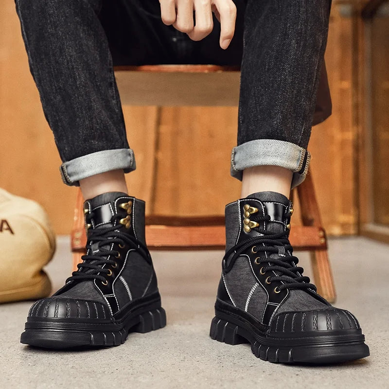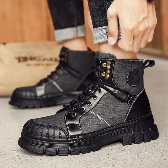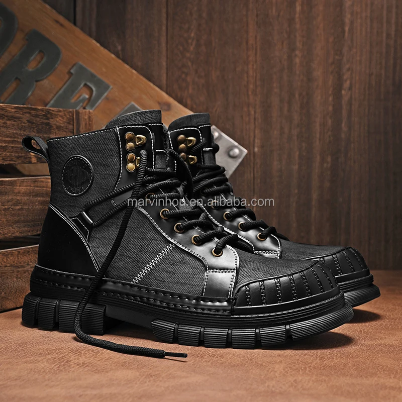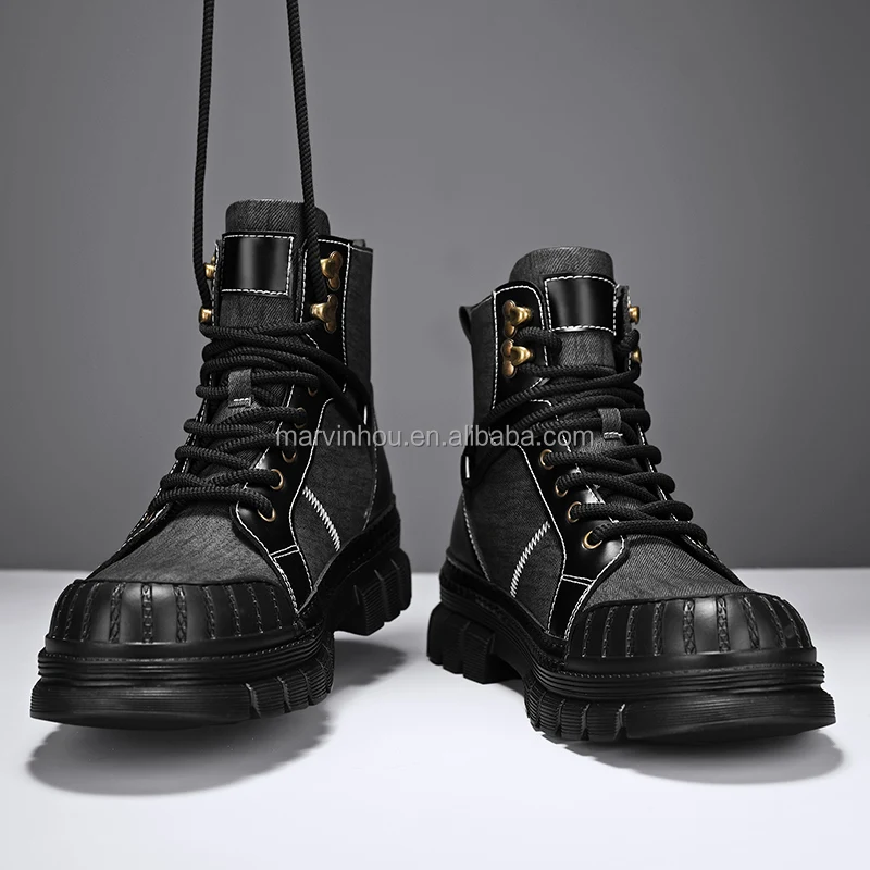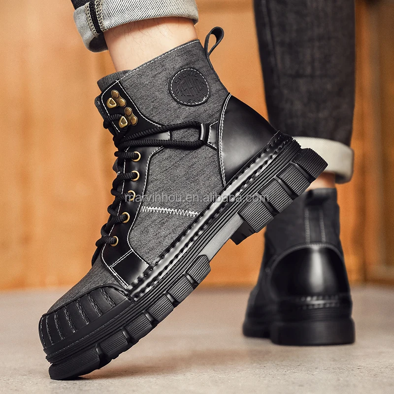 Dropshipping Custom Logo Waterproof Canvas Men's Hiking Martin Boots Genuine Leather Designer Chunky Shoes Winter Chukka Boots