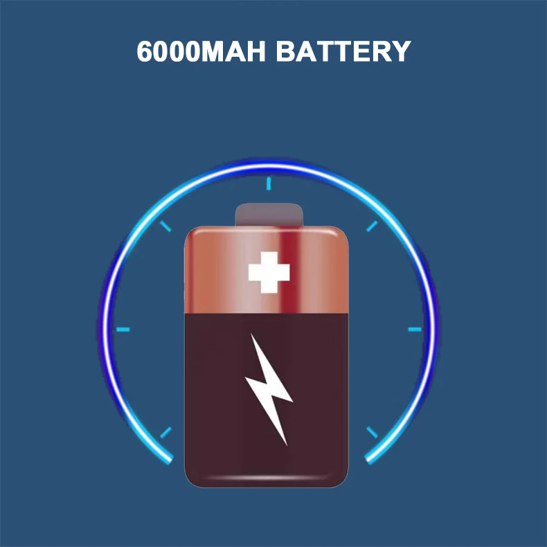 Built-in 6000mAh recyclable rechargeable lithium battery