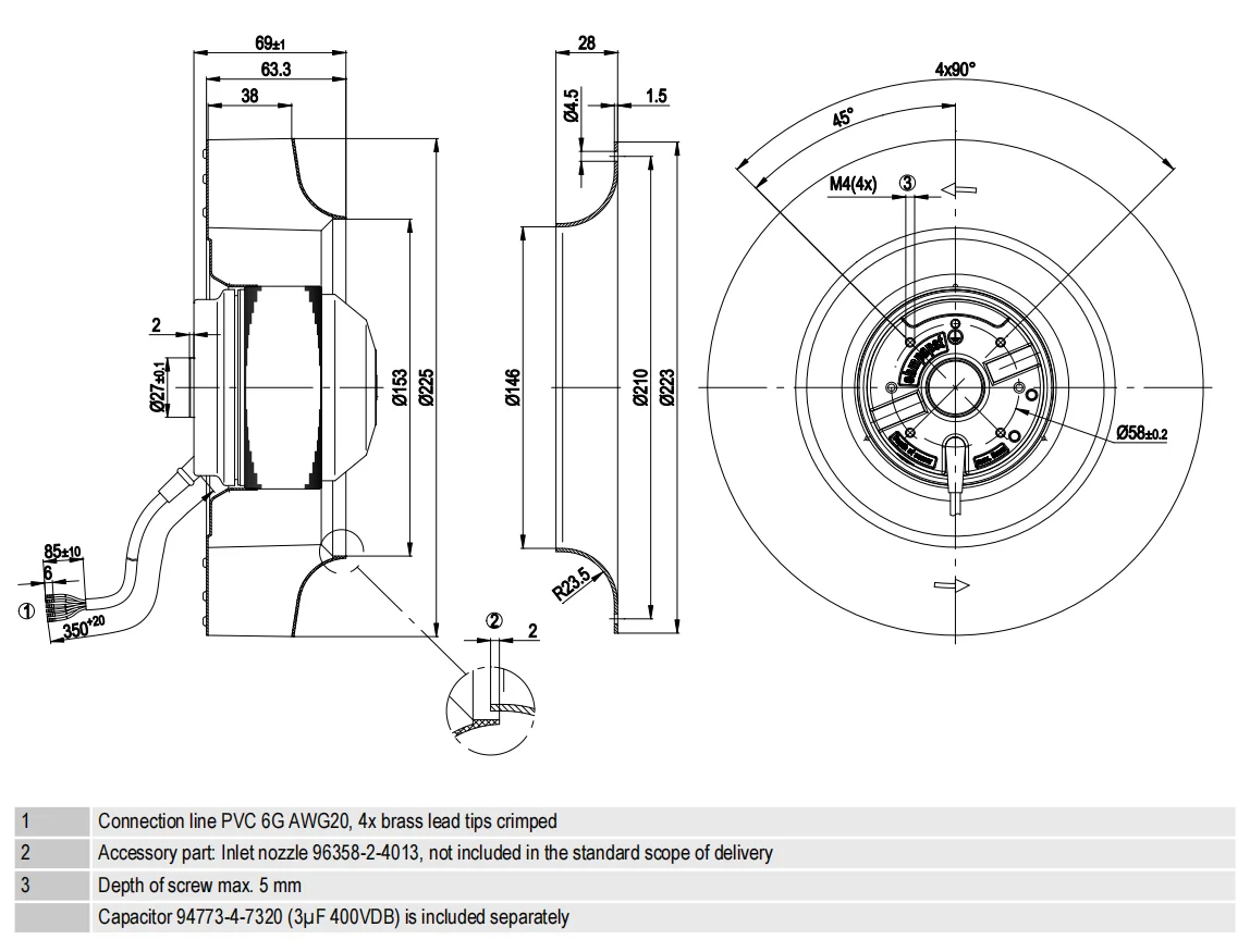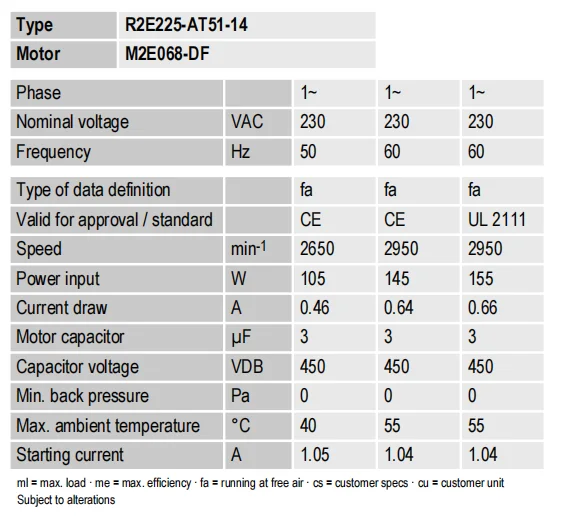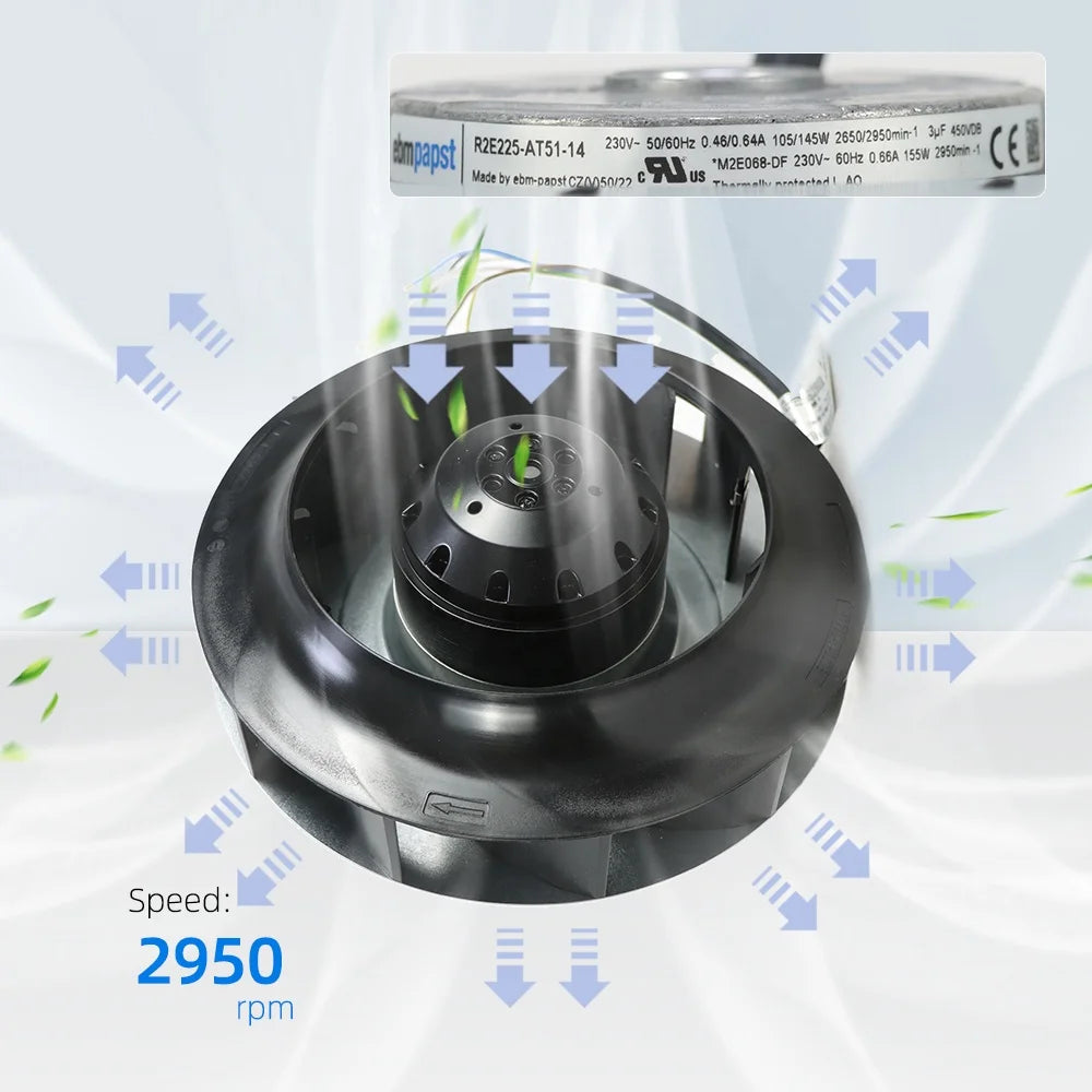 Ebmpapst R2E225-AT51-14 230V AC 2650RPM 225mm 105W 0.46A 1320 m3/h Backward Tilting Siemens Inverter Centrifugal Cooling Fan