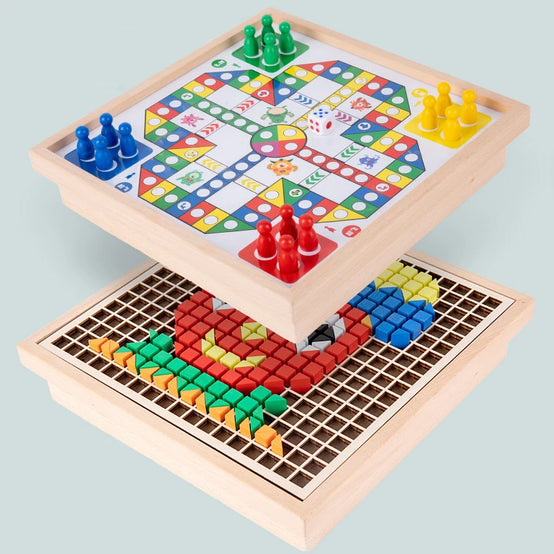 Educational 2 in 1 wooden ludo board game chess game puzzle game wooden