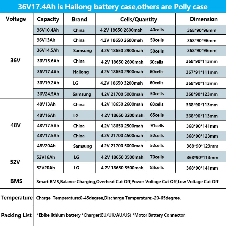 There are other stock batteries with 36V: 10.4Ah 14.5Ah 17.4Ah 24.5Ah.