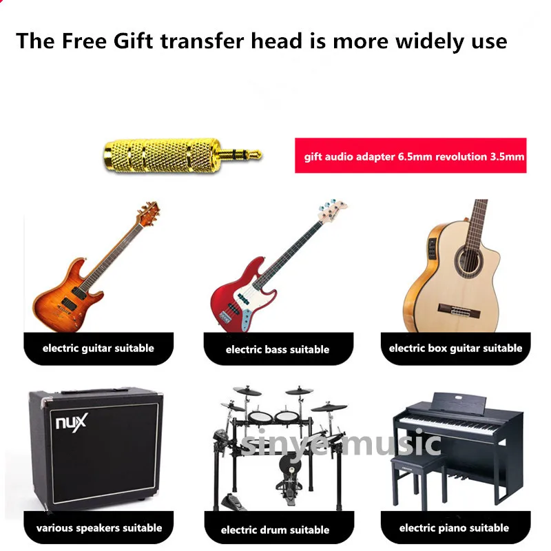 This electric cable guitar adopts 6.5mm(6.35mm) international standard double straight head, gold plating process at the center