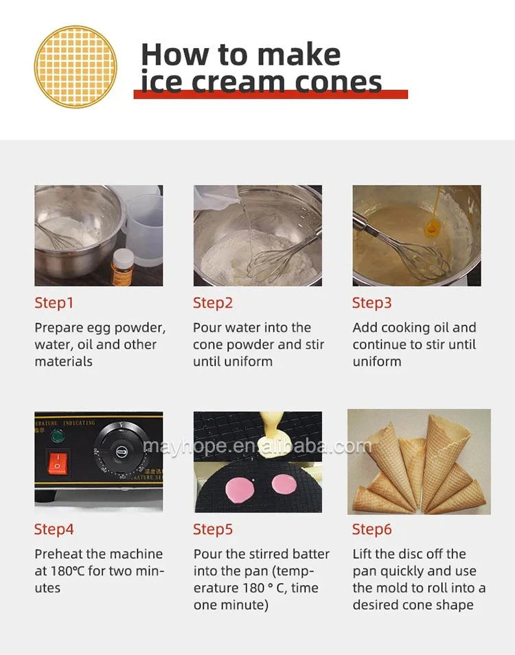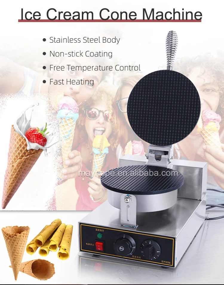 Electric Ice Cream Waffle Cone Maker Machine Non-Stick Egg Roll Machine