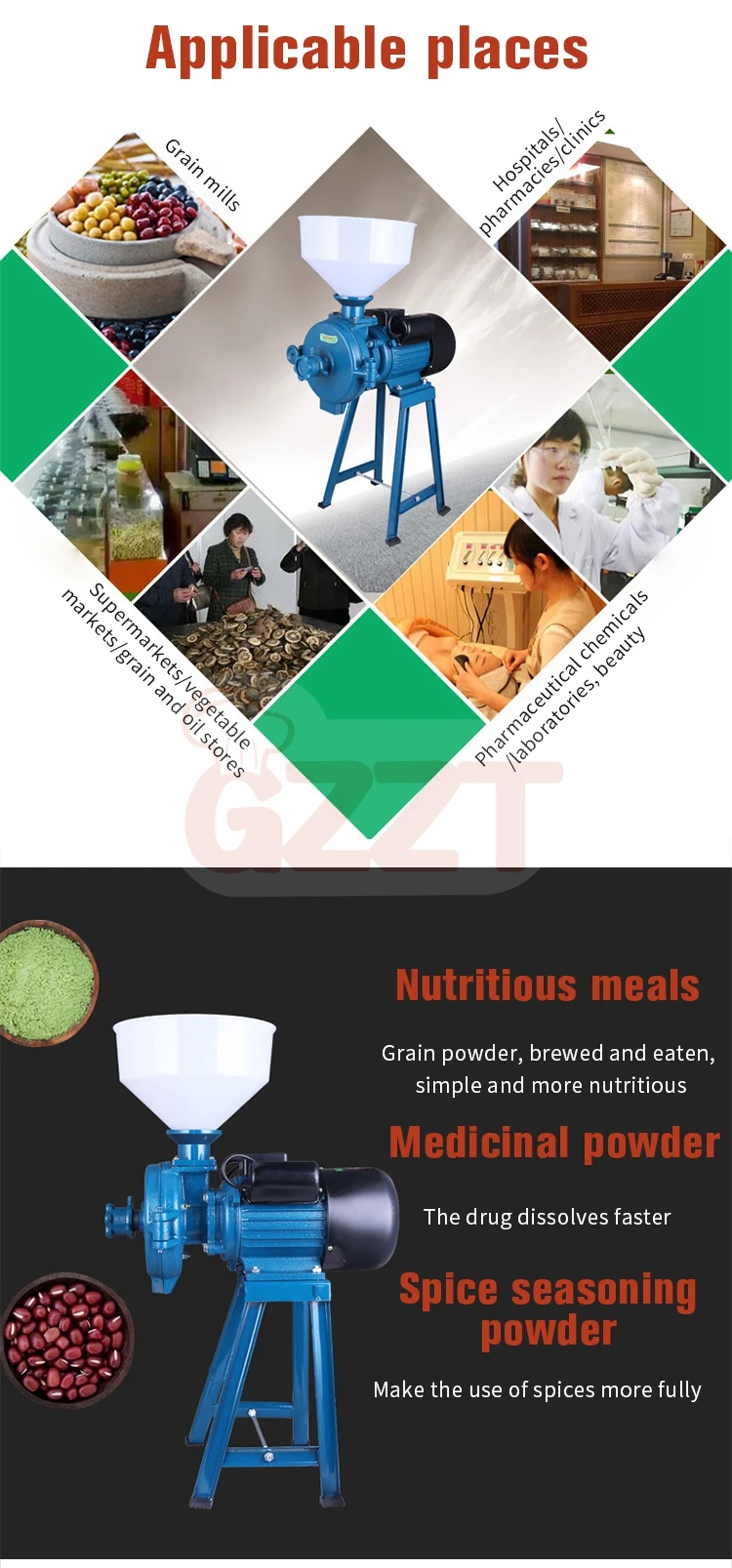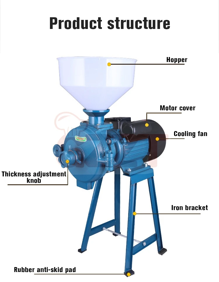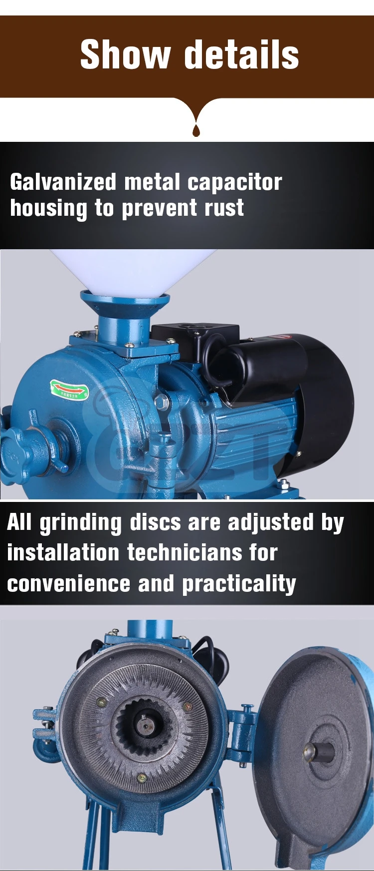 5. The grinding disc can be replaced and is suitable for grain materials. The large-diameter fan hot port design of the back cover can effectively extend the life of the machine and the surface is easy to clean.