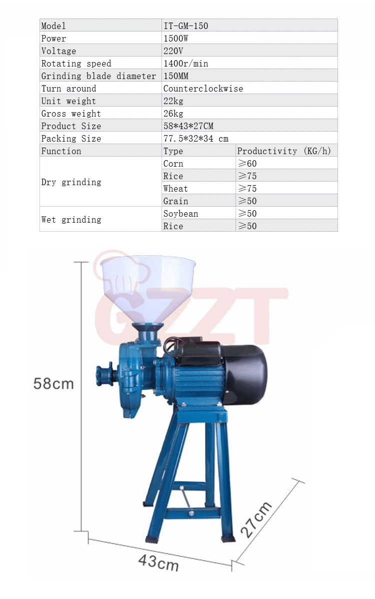 2. 1500W high-power machine, the speed is up to 1400 rpm, counterclockwise rotation and grinding, the efficiency can reach 50KG per hour.