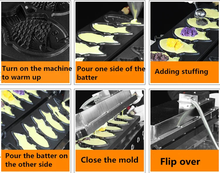 1.Taiyaki is a Japanese fish-shaped cake. The most common filling is red bean paste that is made from sweetened azuki beans. Other common fillings may be custard, chocolate, or cheese. Some shops even sell taiyaki with okonomiyaki, gyoza filling, or a sausage inside. 2.Taiyaki is made using regular pancake or waffle batter. The batter is poured into a fish-shaped mold for each side. The filling is then put on one side and the mold is closed. It is then cooked on both sides until golden brown.