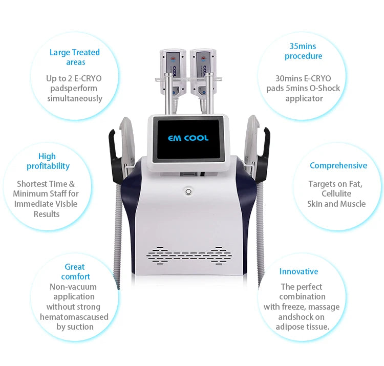 Wide Range of CryoEMS Applications with Easy & Safe Operation • Fat reduction • Firming and lifting • Tissue stimulation and drainage • Anti-aging and cleaning • Pain-free and non-invasive • Gentle and kind to the skin • Simple and intuitive operation • User protocols PIN protected for safety