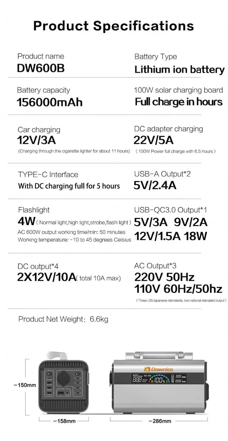 Car Charging:12V/3A, 11 hrs to fill 100%