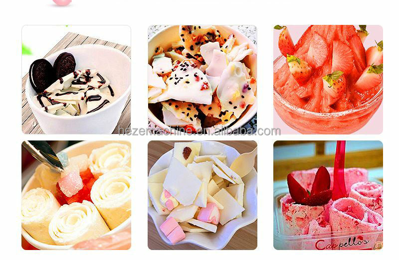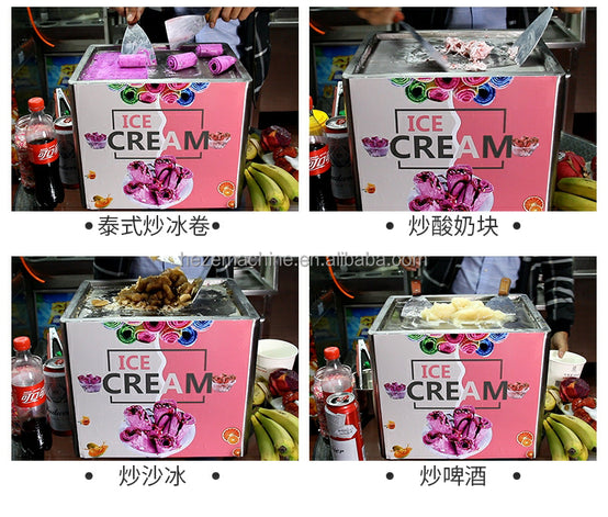 Here we present you this new Fried Ice Cream Maker. It copes with pure water, prepared formulas, fruit juice, milk shake...etc. You can create a variety types of soft and hard ice cream, smoothies, Ice, ice mud, slush, snow ice, fruit ice, ice porridge, etc. It can make ice fast within just 58 seconds while energy saving. Can be used to make ice cream, yogurt, ice shaving and more styles waiting for you to explore. Not only being convenient and efficient to use, processed foods made by it taste good, rich in nutrition and refreshing.