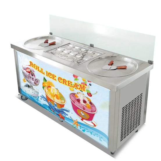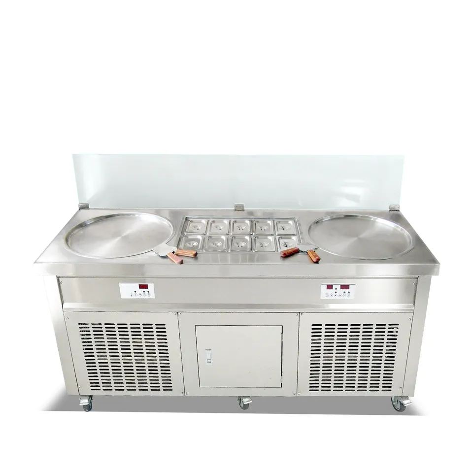 F700 Double Pan & 10mini Topping Pan Fried Ice Cream Machine For Ice Cream Rolls