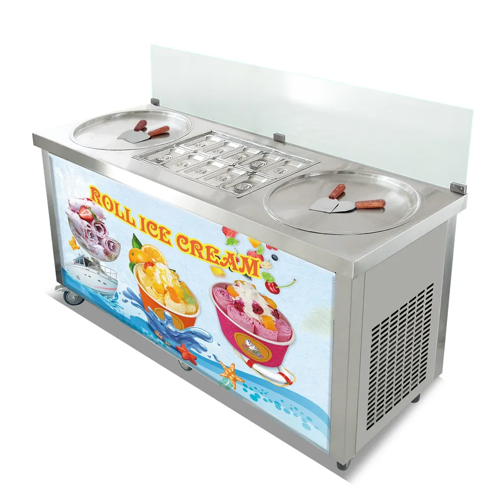 F700 Commerical Double Pan Fried Ice Cream Machine 110V 220V Thai Stir Fry Ice Cream Rolls Machine With Factory Wholesale Prices