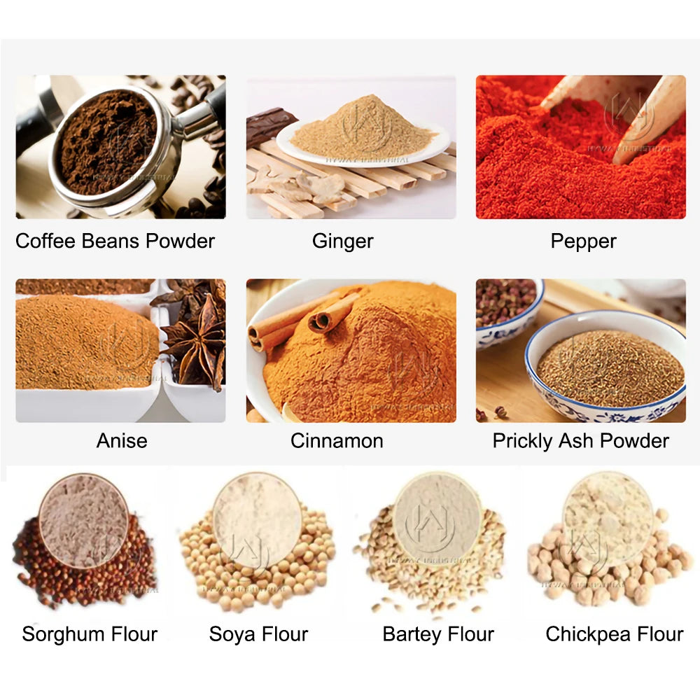 Grinder machine Widely used in coffee beans, flour, soybeans, millet, rice, grains, sesame, red beans, black beans,used in pharmaceutical, chemical, agriculture and food industry, raw material crushing, are pharmaceutical, hospitals, in pharmacies, family, individual restaurants, powdered spices and other processed foods ideal.