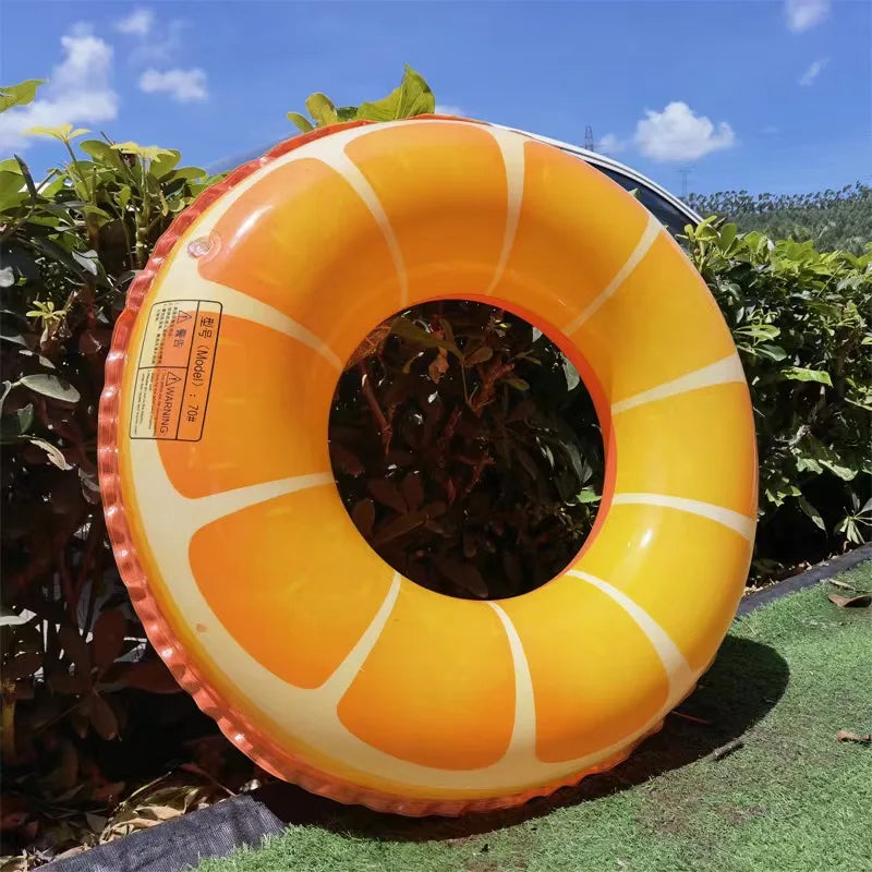 factory custom thicker 0.2mm eco-friendly baby kids inflatable watermelon lemon fruits swim ring floating toys for pool