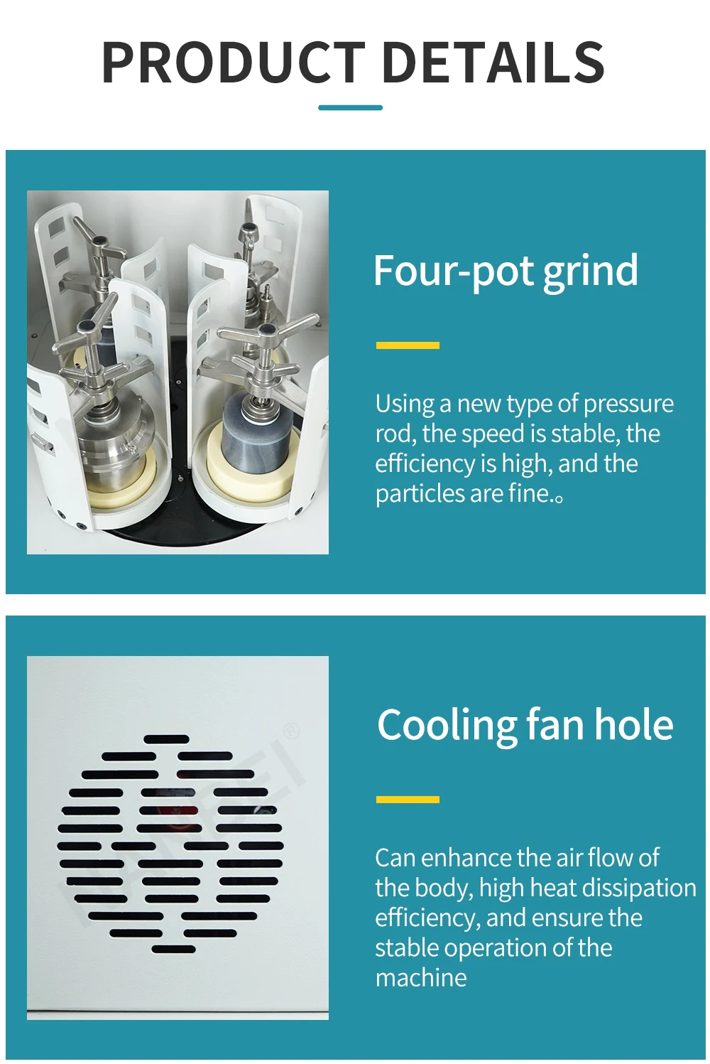 Usage and Application WQXQM series planetary ball mill has four ball grinding tanks installed on one turntable. When the turntable rotates, the tank axis makes planetary movements and the balls in the tanks grinds and mixes samples in high speed movement. The product can smash and blend various products of different materials and granularity with dry or wet methods. Minimum granularity of grinded products can be as small as 0.1 micron (i.e.) 1.0×10-4mm).