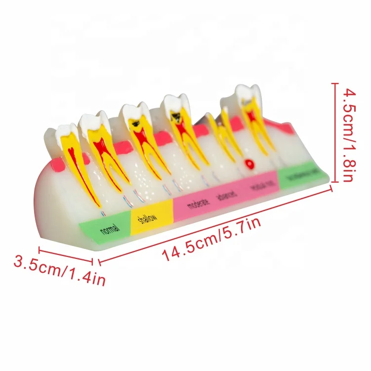 1. Dental decay teeth developing model for educational and study teaching 2. Great tool for better study of dental hygiene and oral care teaching, 3. Made of high-quality resin material, tasteless, durable, corrosion resistant and environmentally friendly 4. Portable, easy to use, lightweight, durable. Best gift for dentist to communicate with their patients