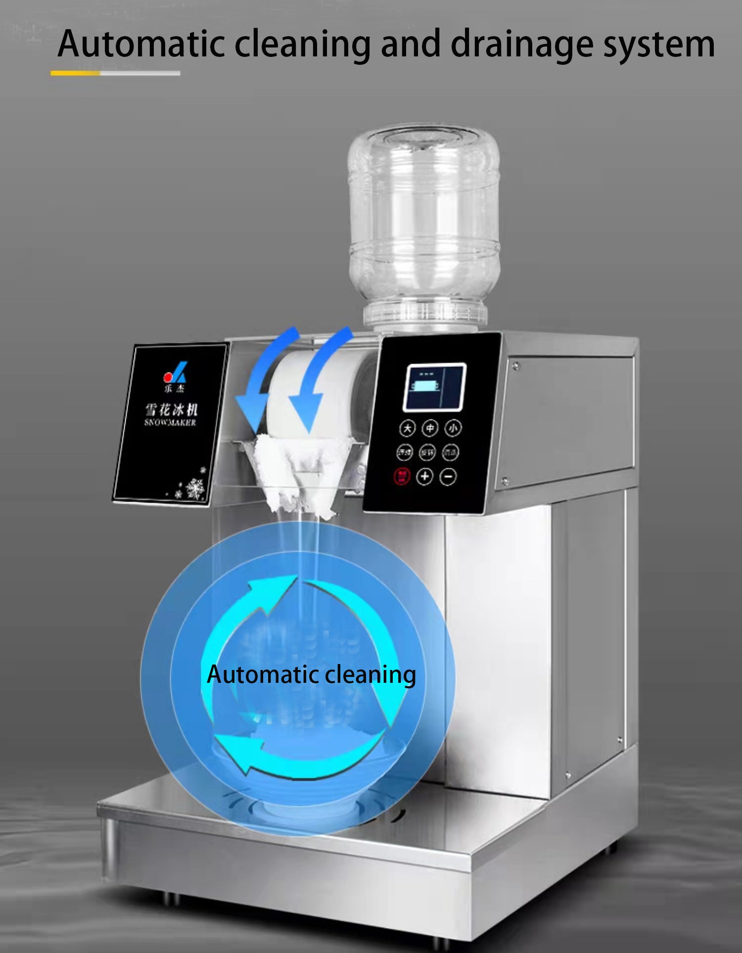 Snowflake ice machine uses 304 stainless steel evaporation roller, the lowest can reach -30 degrees, all kinds of liquid can make snowflakes, open structure, detachable pipes, one-click cleaning, easy to use!