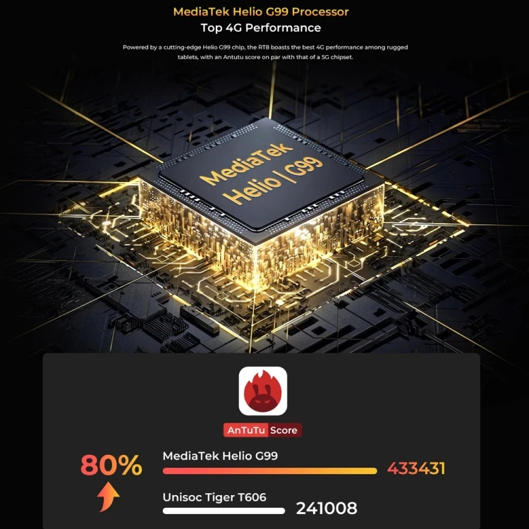 4. CPU: MediaTek Helio G99 Quad-core (2 x Cortex-A76 2.2GHz + 6 x Cortex-A55 2.0GHz)